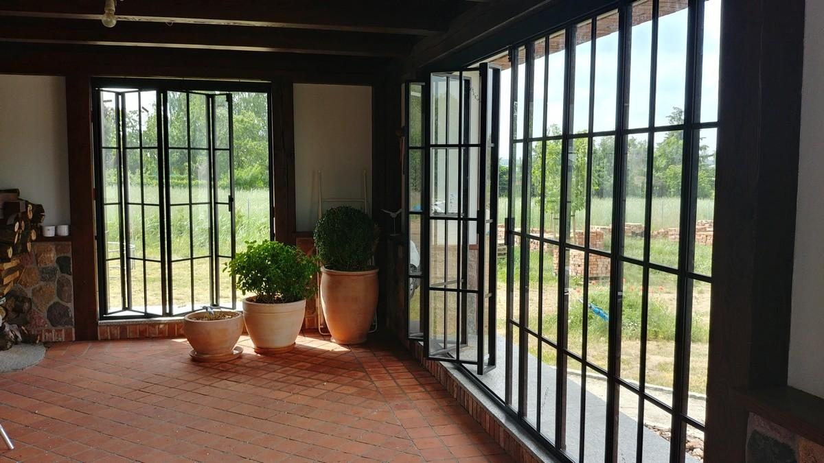 Drzwi balkonowe na patio składane, przesuwane, otwierane w różnych konfiguracjach. Takie możliwości przy zachowaniu wyjątkowo niewielkich przekroi profili daje nam jedynie stolarka stalowa. Duże gabaryty, długie i wysokie zabudowy bez ryzyka odkształceń ze względu na różnice temperatur przy zachowania maksymalnego dostępu do światła to wyjątkowa zaleta drzwi i okien stalowych. Ponadto nadają wnętrzu industrialny, unikatowy charakter i rozświetlają pomieszczenie.